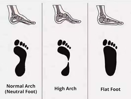 Normal Arch (Neutral Foot): The arch is moderate, providing good cushioning and even pressure distribution while walking, with a low risk of injury.
